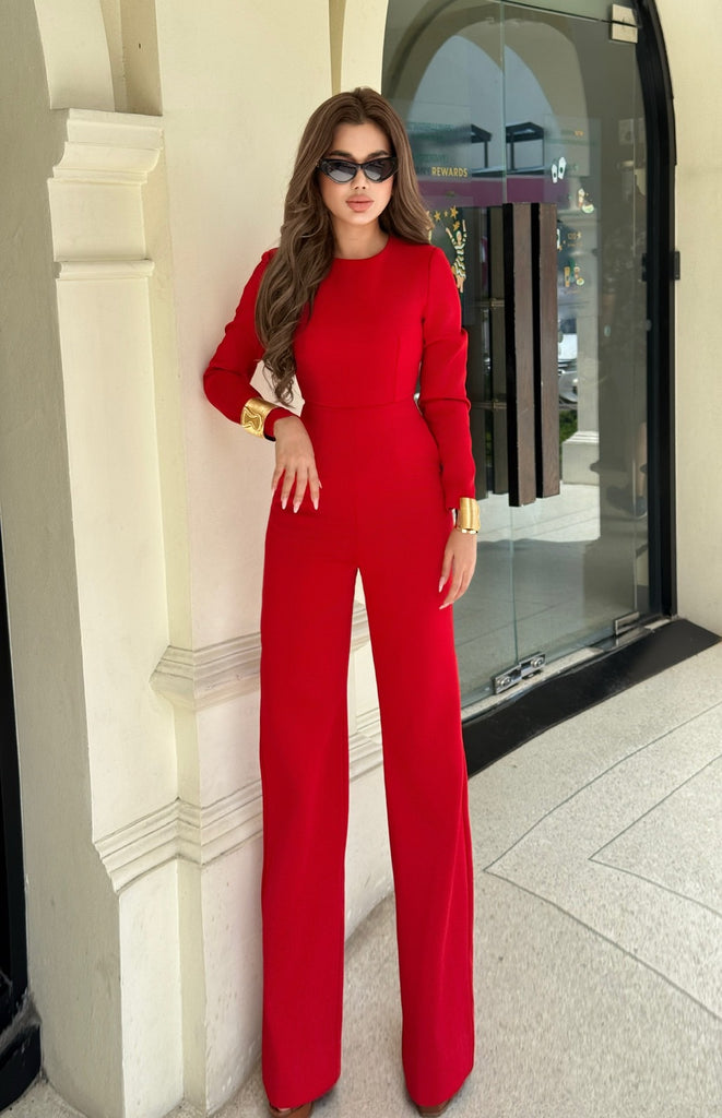 WHITE COLLAR LONG SLAVE JUMPSUIT